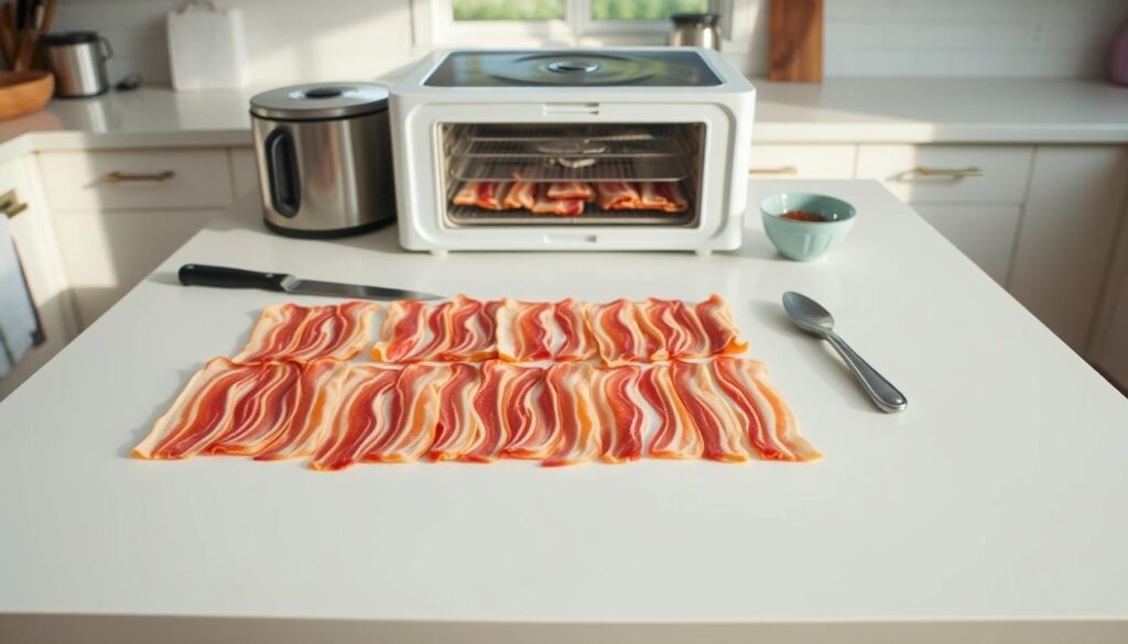 Before you start dehydrating bacon, make sure it’s ready. This means the right texture, safety, and taste. Follow these steps for perfect bacon every time.