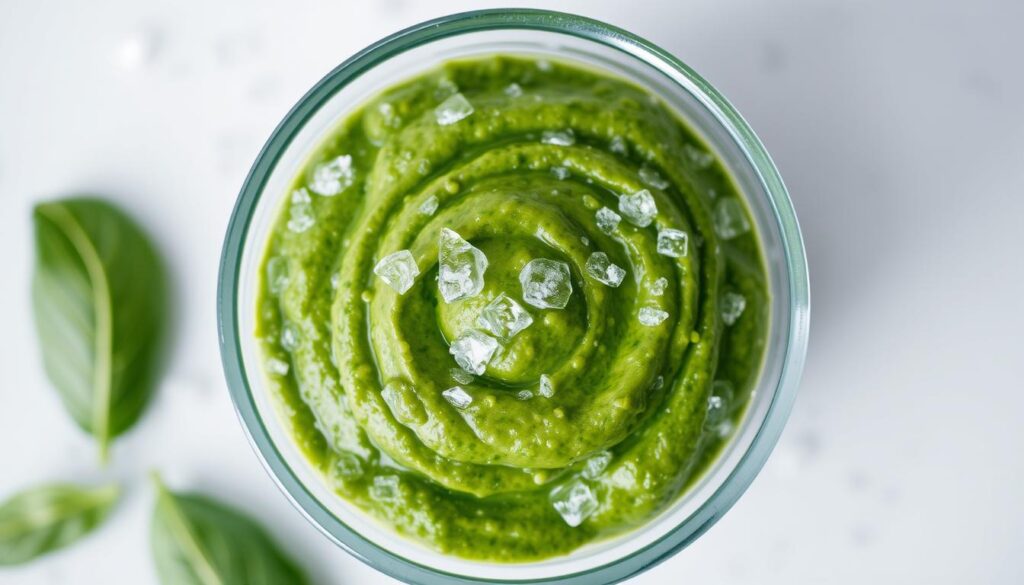 Freezing basil in oil is a great way to keep its flavor and aroma. It’s perfect for making freezing basil pesto all year. Choose a neutral oil like olive or avocado oil to keep the basil’s taste.